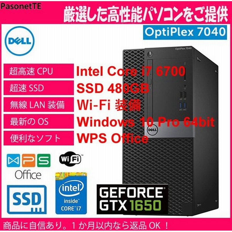 ゲーミングpc 中古pc Apex Legends フォートナイト グラボ Nvidia Gtx1650 Cpu Core I7 6700 Ssd メモリ 16gb Wifi付 Dell 7040 Mt 通販 Lineポイント最大get Lineショッピング